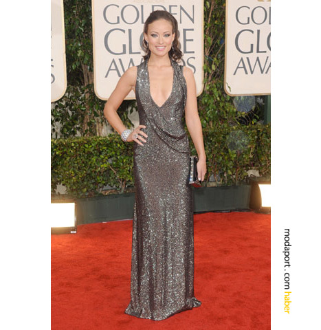 House dizisi yıldızı Olivia Wilde, kurşuni Gucci elbisesinin çok rahat olduğunu söylüyor. Elbiseyi Tiffany & Co. mücevherler, Judith Leiber el çantası ve Jimmy Choo platform ayakkabılar tamamlıyor. Aksesuarlar gerçekten başarılı.