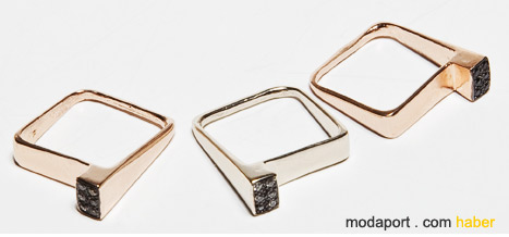 Genel olarak İskandinav tasarımlarına yakın bir çizgisi olan Zeckié‘nin 2010 koleksiyonundaki Antik Yunan mitolojisinden esinlenen kare tek taş yüzükler oldukça sıradışı. Kuyumcularda satılan tek taşlardaki bunaltıcı tek düzelikten kurtulmak, özellikle yeni evlenecekler için harika bir haber.